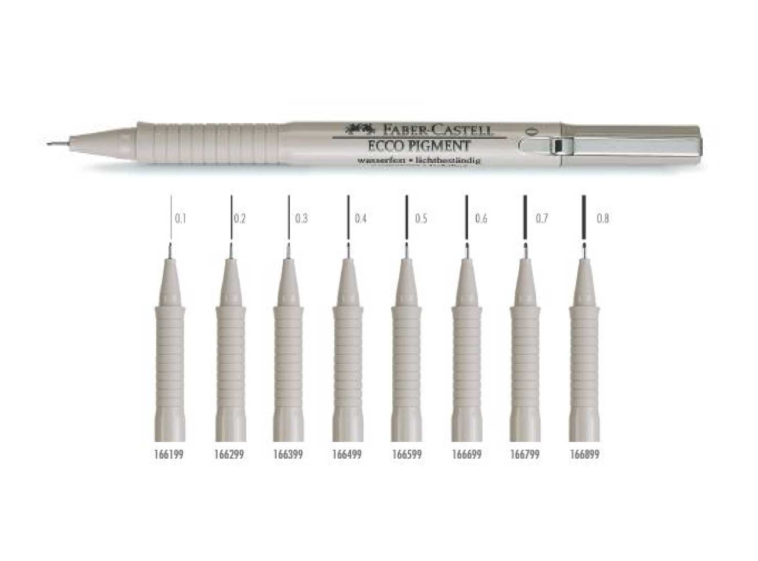 - Marcador Ecco Pigment – Tinta China: Caja de 10 unidades y punta de 0.1 a 0.8 mm.
